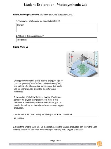 Student Exploration Photosynthesis Lab Answers Pdf